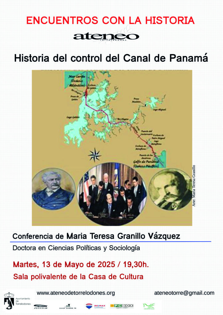 La conferencia “Historia del control del Canal de Panamá” tendrá lugar el martes 13 de mayo a las 19:30 h en la sala polivalente de la Casa de Cultura y correrá a cargo de la doctora en Ciencias Políticas y Sociología, María Teresa Granillo Vázquez.