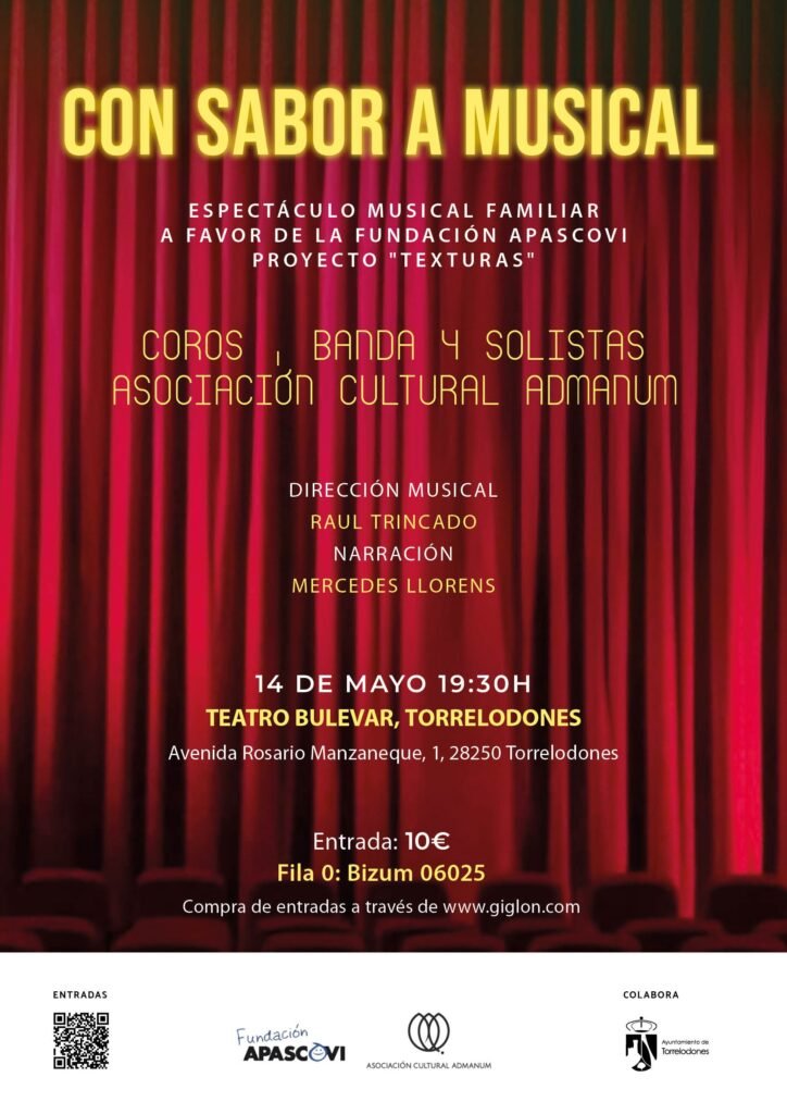 “Con sabor a musical” destinará el dinero recaudado a financiar el proyecto “Texturas” de la fundación APASCOVI