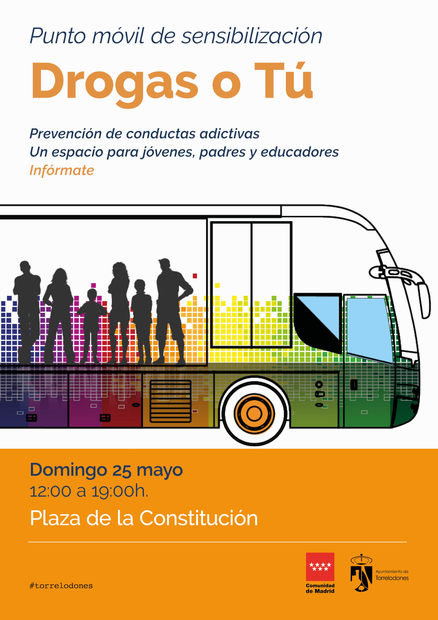 La Comunidad de Madrid, a través de la Dirección General de Salud Pública, ha puesto en marcha una nueva edición del programa Drogas o Tú, un servicio itinerante de prevención de conductas adictivas dirigido a adolescentes, jóvenes, padres y educadores. La iniciativa, que desde 2010 ha ayudado a cerca de 400.000 personas, llegará el próximo domingo 25 de mayo a la Plaza de la Constitución con su unidad móvil equipada con tecnología innovadora y actividades interactivas.