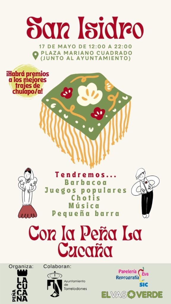 Coincidiendo con la festividad de San Isidro, la feria se impregnará del sabor más castizo: se freirán pestiños y buñuelos en plena plaza, acompañados por la música nostálgica de un organillero y los característicos dulces de un barquillero. Además, la Peña La Cucaña amenizará la jornada con su música a golpe de chotis. A la barbacoa, juegos populares y una pequeña barra se sumará el concurso de trajes de chulapo o de chulapa, con premios exclusivos para los ganadores.
