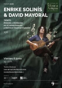El Festival de Música Antigua (FEMAT) abrirá sus puertas el próximo 6 de junio, a las 19:30 h, con la actuación de Enrike Solinis guitarrista clásico galardonado en numerosos concursos internacionales y uno de los intérpretes de la cuerda pulsada más versátiles y valorados actualmente. Ha sido invitado como solista y continuista en prestigiosas formaciones como Hesperion XXI, Le Concert de Nations y la Capella Reial de Catalunya dirigidos por Jordi Savall, Concerto Vocale y Akademie für Alte Musik Berlin dirigido por René Jacobs, Le Concert D´Astrée dirigido por Emmanuele Haïm etc. Siempre se ha sentido atraído por músicas de diferentes culturas, regiones y épocas, reflejando esta diversidad en su personalidad musical. En 2009 crea su propio grupo Euskal Barrok Ensemble y desde entonces dedica su labor artística principalmente a este y a su carrera como solista.